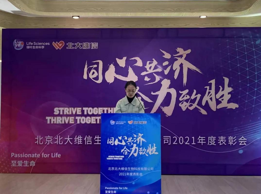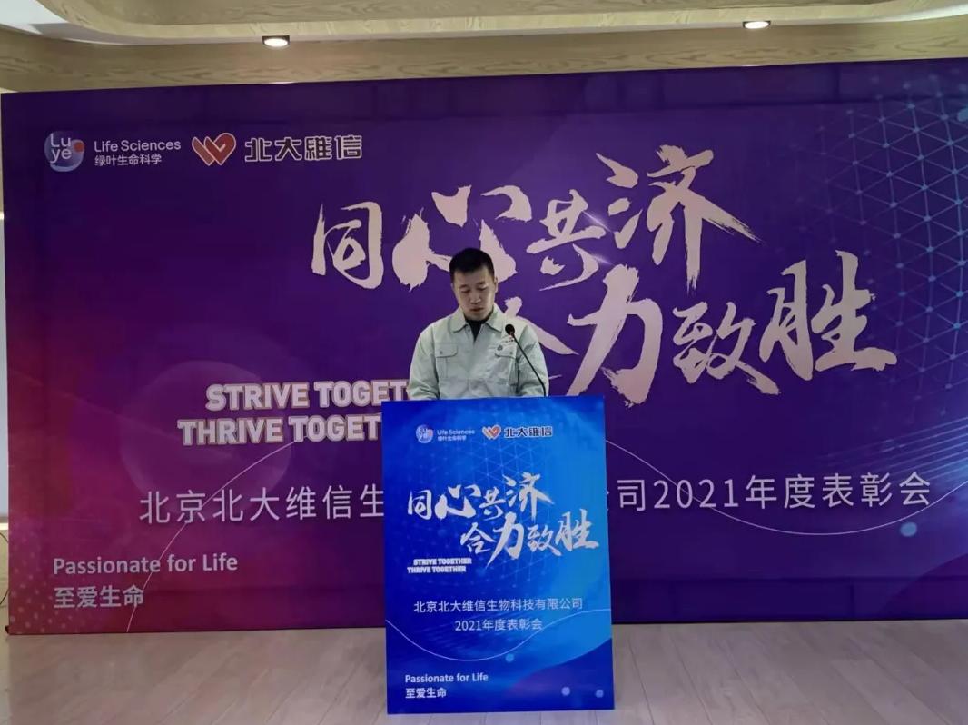 薛總對(duì)北大維信在2021年取得的生產(chǎn)經(jīng)營(yíng)上的突破表示祝賀,肯定公司全體員工的堅(jiān)守和付出。同時(shí)薛總也向公司全體員工介紹了綠葉生命科學(xué)集團(tuán)在2021年取得的重要成就和未來(lái)的規(guī)劃,鼓舞北大維信全體員工在新的一年取得新的突破,并向公司全體員工致以虎年祝福。