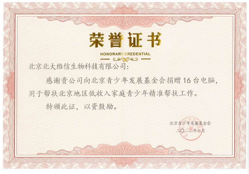 2022年7月29日下午,北大維信“學(xué)子陽(yáng)光”項(xiàng)目電腦捐贈(zèng)活動(dòng)舉行。團(tuán)支部石海清書記代表公司與北京青少年發(fā)展基金會(huì)副秘書長(zhǎng)劉紅杰女士在公司黨群活動(dòng)室共同參加了助力“學(xué)子陽(yáng)光”,幫扶北京地區(qū)低收入家庭青少年精準(zhǔn)幫扶工作捐贈(zèng)儀式。